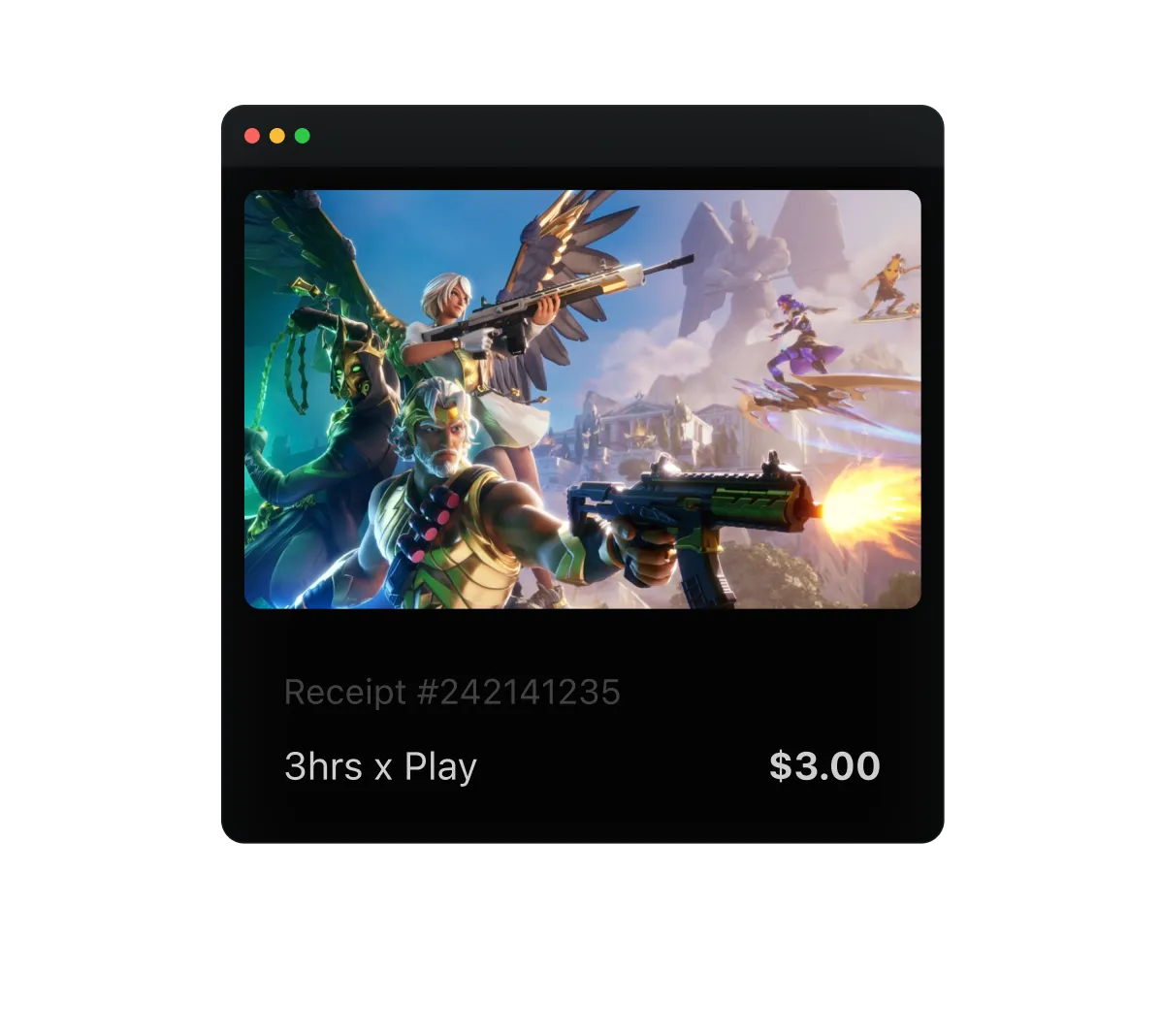 Flexible pay. Swift play. Only pay for the gaming time you need.